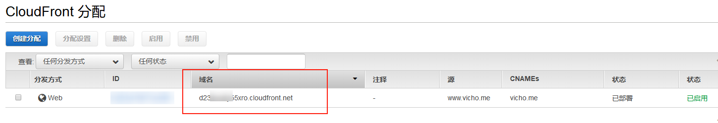 后续不表,完成分配之后,会分配给你一个cname地址,如下图所示: