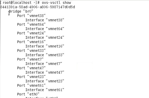 ovs-vsctl add-port br0 vmnet1 //将vmnet1虚拟网卡绑定到br0上