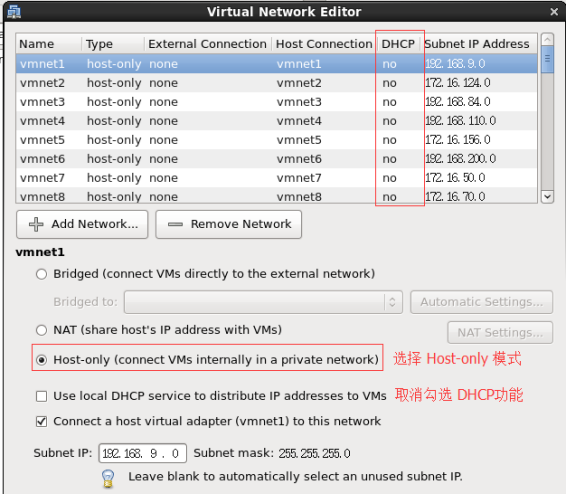 添加vmnet:添加的虚拟网卡 vmnet1-128。