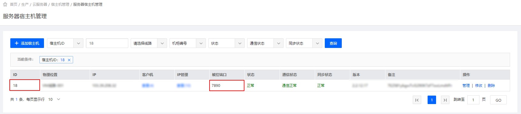 id:主控后台:生产->云服务器->宿主机管理。找到添加的宿主机对应自己的ID列,填入此ID。