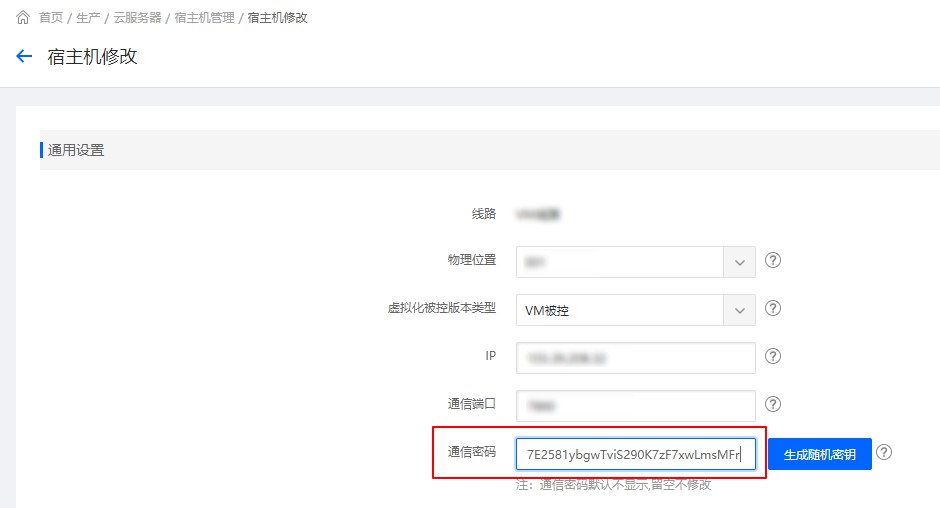 guid:主控后台:生产->云服务器->宿主机管理->修改。必须与主控后台的 通信密钥 保持一致。