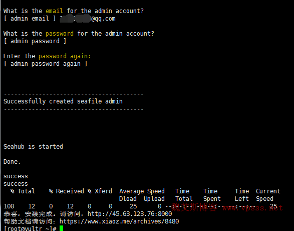 看到提示后再敲 2 次回车,添加上管理员邮箱和密码(自己随便设置)就可以了。